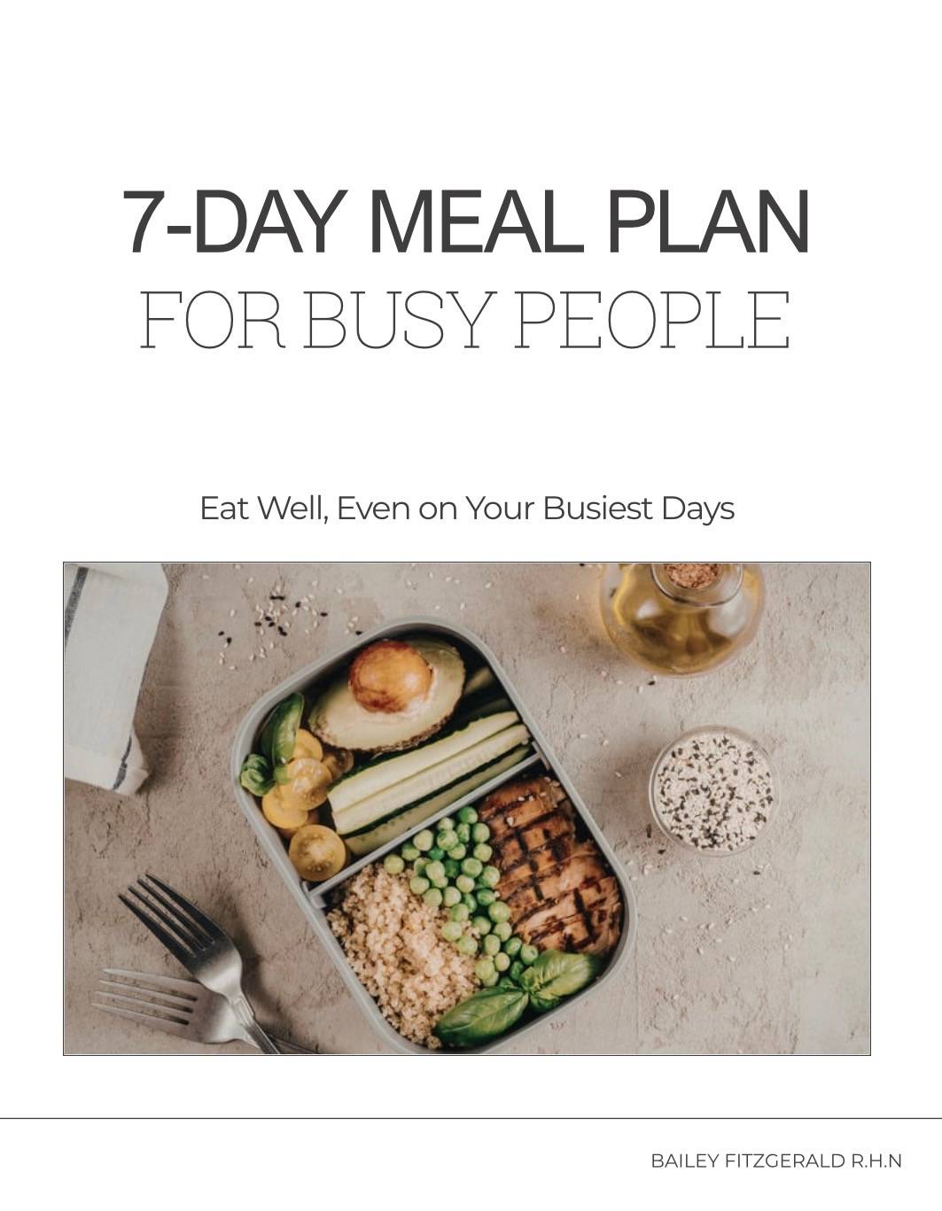 Fuel your week with ease! This 7-day meal plan is designed for busy people who want healthy, balanced meals without the stress. Each day includes 3 main meals and 2 snack options, complete with recipes, a grocery list, meal prep tips, and a portion guide to save time and simplify planning. It makes nutrient-dense eating practical and manageable while supporting overall health.